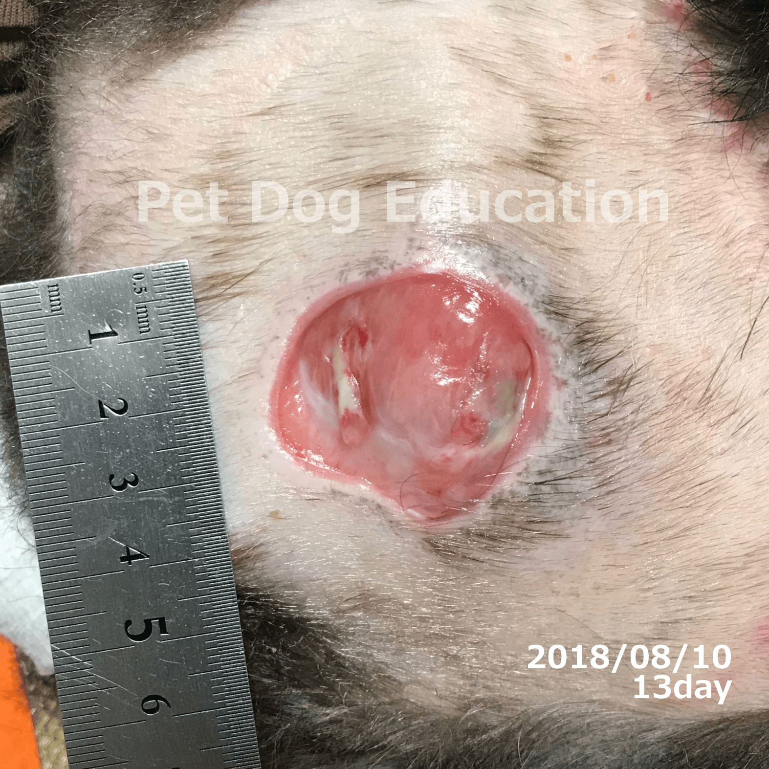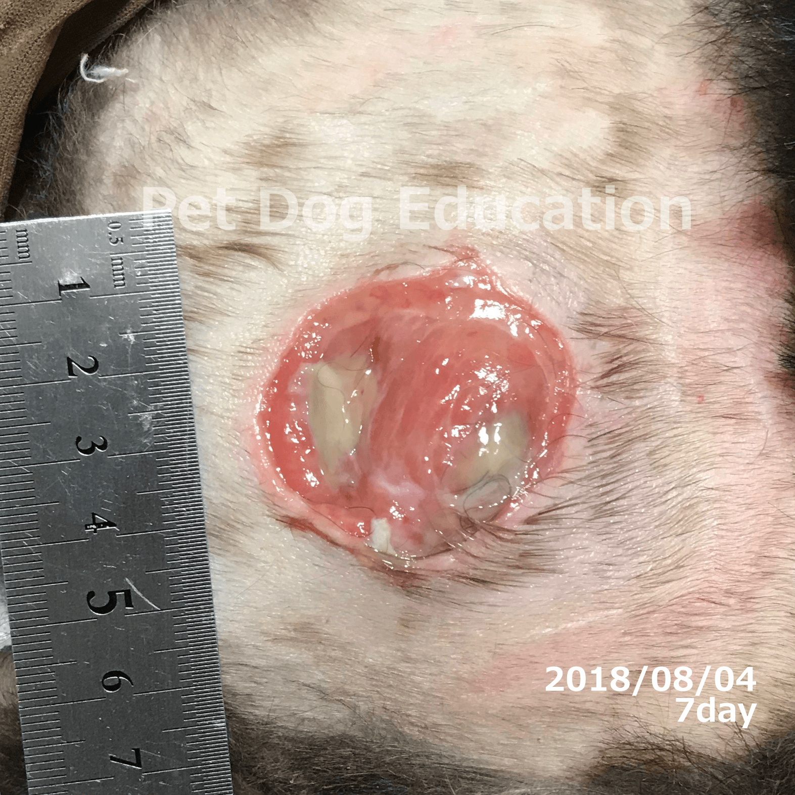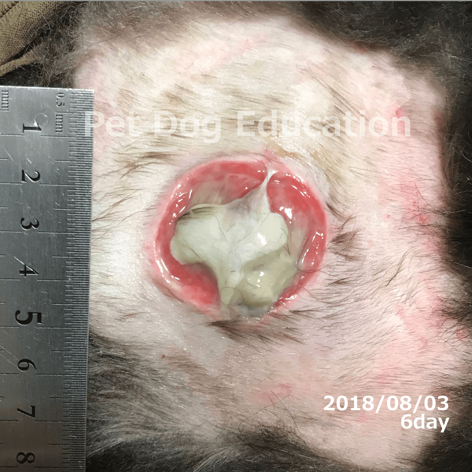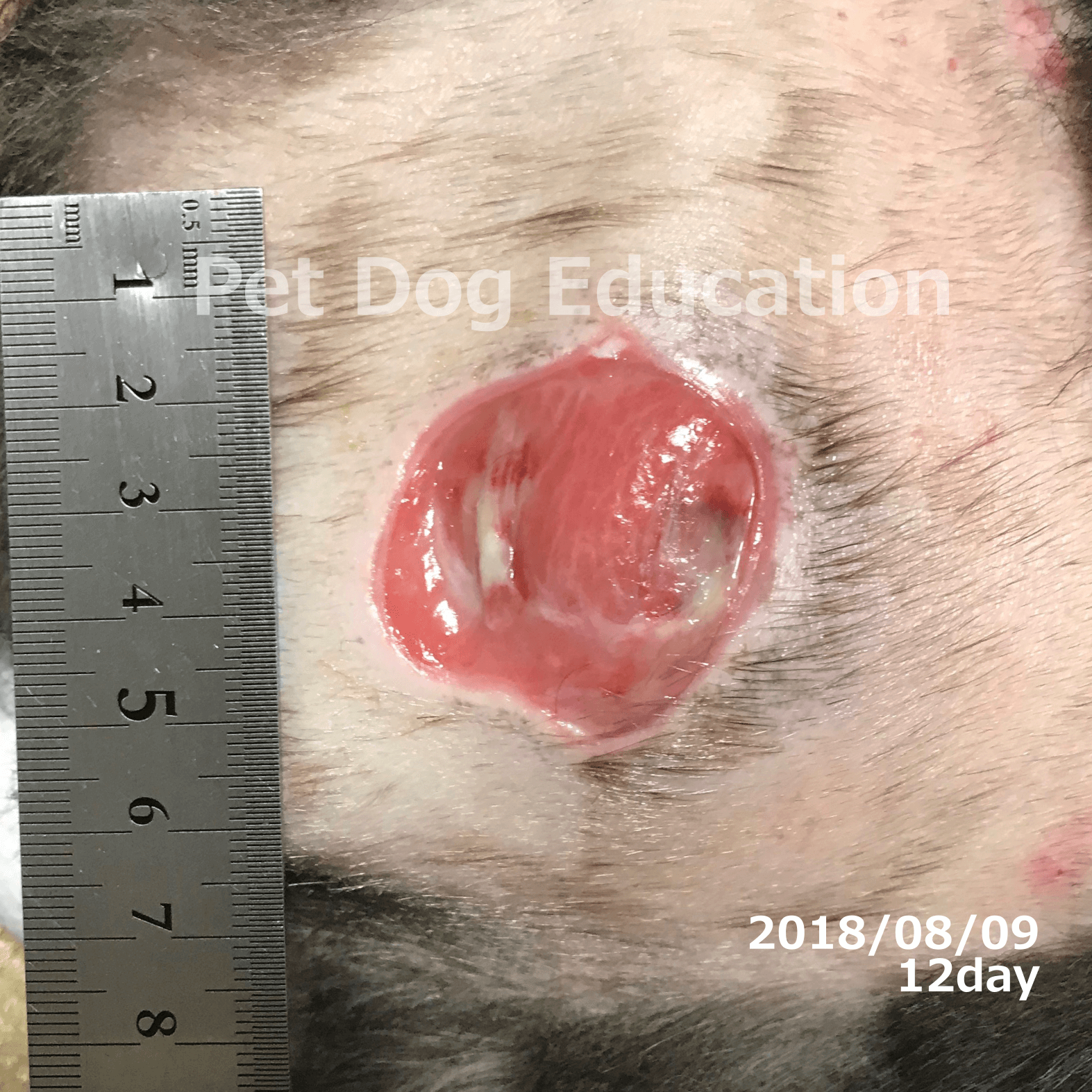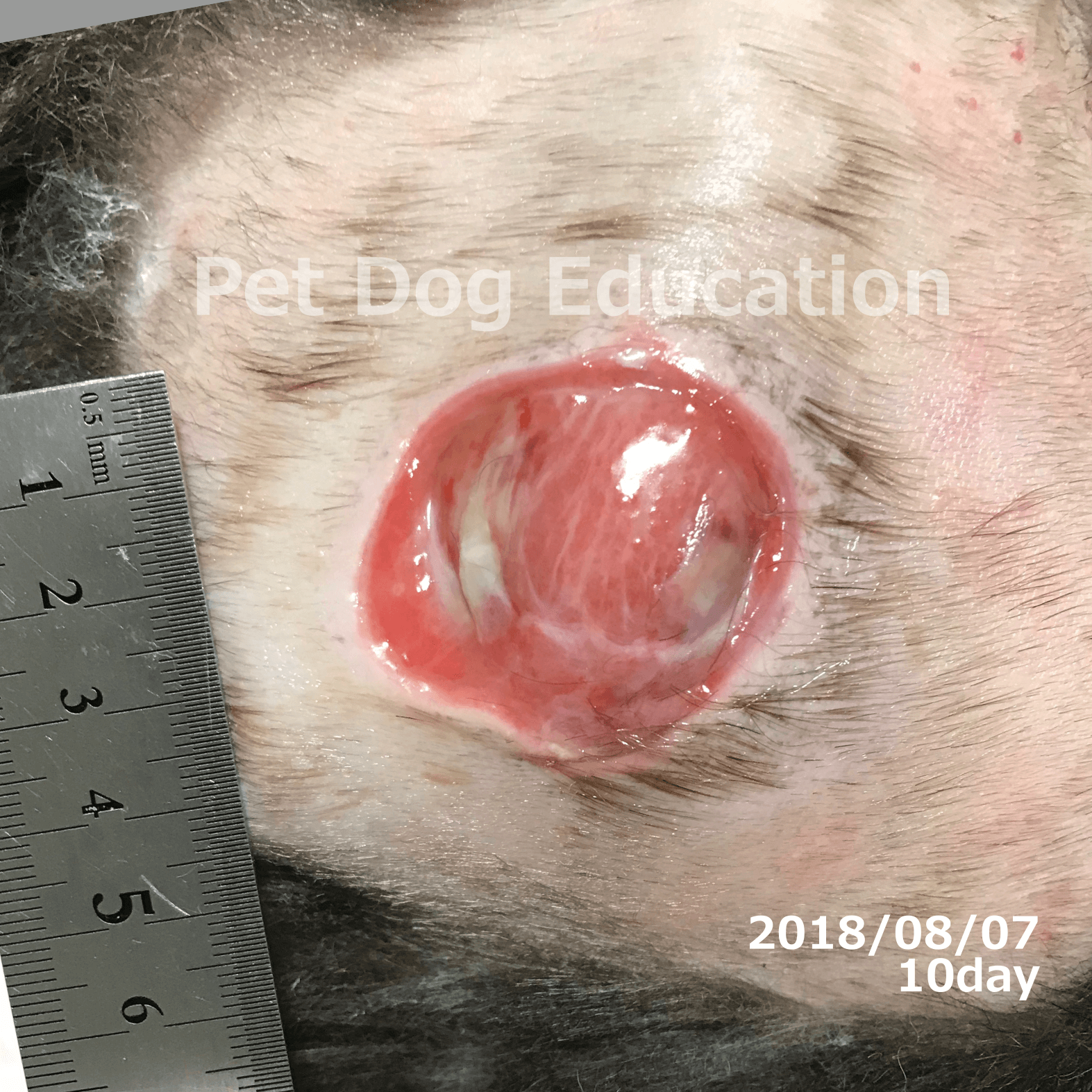 朝、思い切ってふやけて白くなった壊死部分を切除(デブリードマン)した。まだ白いところが残っているけどペロンとなっていなかったので保留。