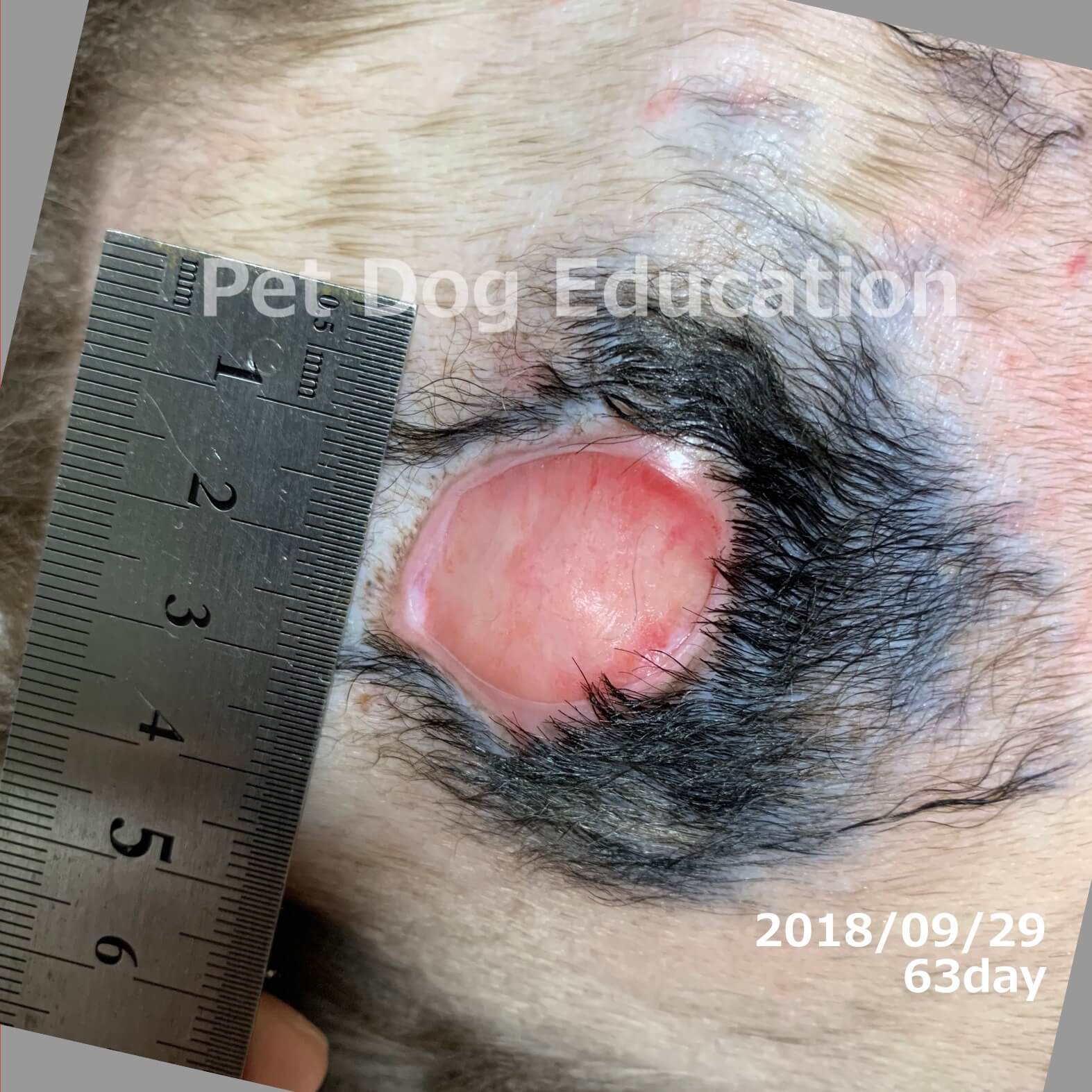 傷の左端の腱と思われる部分の上の方が見えなくなってきました。