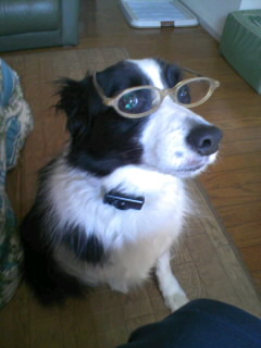 ソフトバンクのCMでカイ君が上手にサングラスをかけているのを見て、我が家の愛犬(ボーダー・コリー)もまねしてみました。